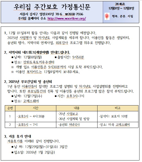 ¿ì¸®Áý Àå¾ÖÀÎ ÁÖ°£ ´Ü±âº¸È£½Ã¼³¿¡ ¿À½Å°ÍÀ» ȯ¿µÇÕ´Ï´Ù.