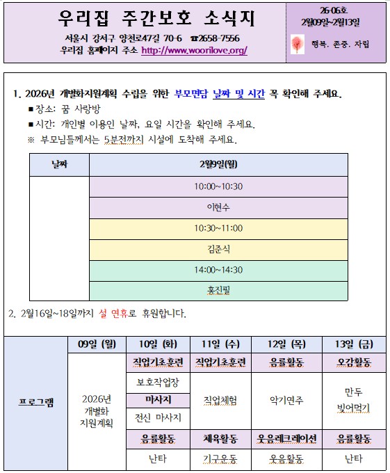 ¿ì¸®Áý Àå¾ÖÀÎ ÁÖ°£ ´Ü±âº¸È£½Ã¼³¿¡ ¿À½Å°ÍÀ» ȯ¿µÇÕ´Ï´Ù.