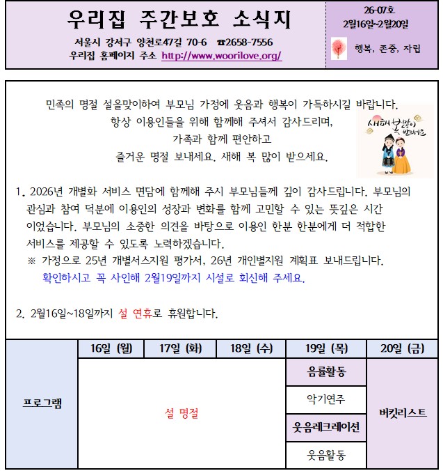 ¿ì¸®Áý Àå¾ÖÀÎ ÁÖ°£ ´Ü±âº¸È£½Ã¼³¿¡ ¿À½Å°ÍÀ» ȯ¿µÇÕ´Ï´Ù.