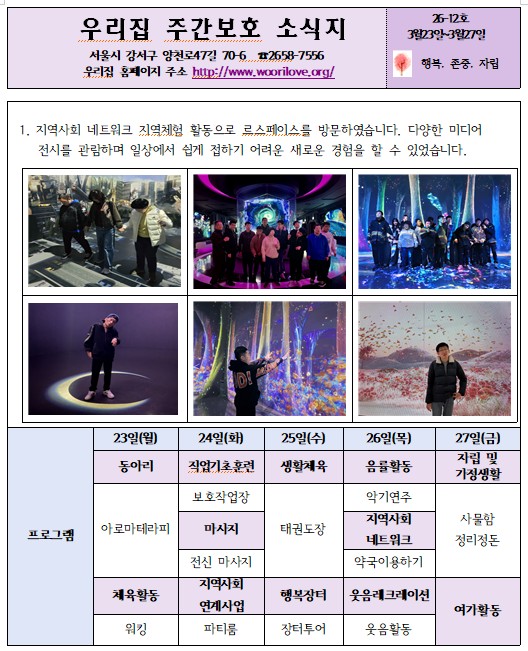 ¿ì¸®Áý Àå¾ÖÀÎ ÁÖ°£ ´Ü±âº¸È£½Ã¼³¿¡ ¿À½Å°ÍÀ» ȯ¿µÇÕ´Ï´Ù.