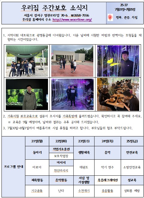 ¿ì¸®Áý Àå¾ÖÀÎ ÁÖ°£ ´Ü±âº¸È£½Ã¼³¿¡ ¿À½Å°ÍÀ» ȯ¿µÇÕ´Ï´Ù.
