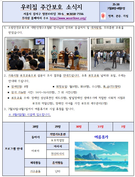 ¿ì¸®Áý Àå¾ÖÀÎ ÁÖ°£ ´Ü±âº¸È£½Ã¼³¿¡ ¿À½Å°ÍÀ» ȯ¿µÇÕ´Ï´Ù.